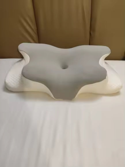 Das Kissen kombiniert mehrere funktionale Bereiche, die Kopf, Nacken und Schultern gezielt unterstützen. Die seitlichen Aussparungen reduzieren Druck auf die Ohren beim Seitenschlafen, während die Form eine stabile und angenehme Lagerung in Rücken-, Seiten- oder Bauchlage ermöglicht.